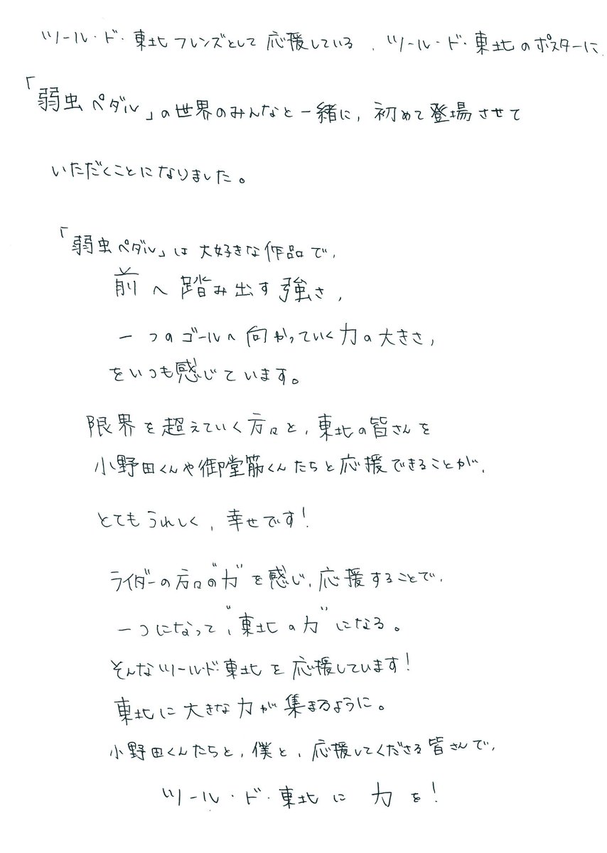 弱虫 ペダル 人気 イラスト「弱虫ペダル 70巻」「弱虫ペダル sparebike 8巻」発売を記念して、豪華オンライン&リアルイベント開催! 豪華オンラインイベントとして、渡辺航先生のイラスト入りサイン本ペン入れ映像を対象商品購入者全員が視聴可能!累計2500万部突破の大人気スポーツ青春漫画、初の実写映画化!永瀬廉(King & Prince)主演、伊藤健太郎、橋本環奈らとともに自転車ロードレースに初挑戦。青春のその全てが詰まった、この夏一番胸が熱くなる映画がいま、走り出す!21年3月10日(水) Bluray&DVDリリース! 描き下ろしイラスト公開!弱虫ペダルデジタルスタンプラリー ウォーク&ライド in 茨城 0917 茨城県南部にてデジタルスタンプラリーが開催決定! 神奈川県とのコラボが決定!! MORE『弱虫ペダル』(よわむしペダル)は、渡辺航による日本の少年漫画作品。通称「弱ペダ」 。